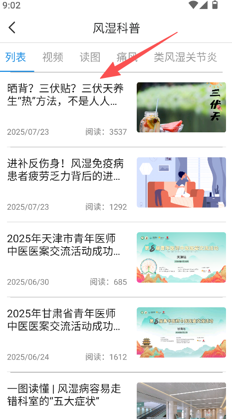3、浏览科普文章、资讯,获取风湿相关知识。
