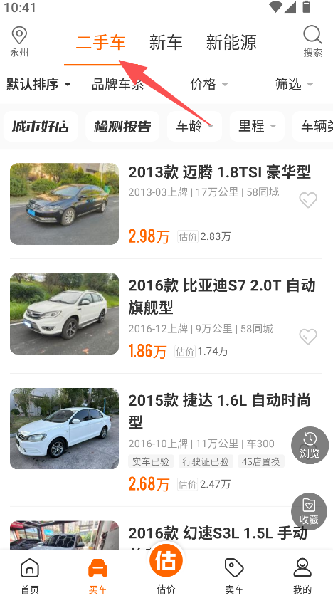 1、车辆分类清晰明确,按二手车、新车、新能源区分,同时支持多维度筛选,能快速定位到目标车辆,减少选购过程的信息筛选时间。