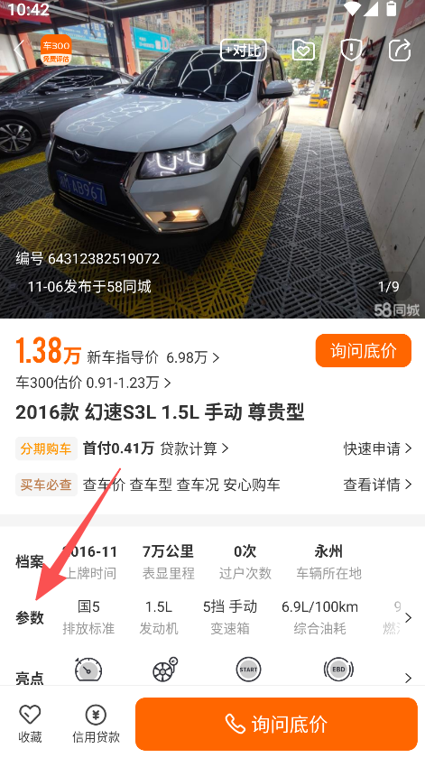 3、查看车辆详情,了解参数信息,发起咨询。