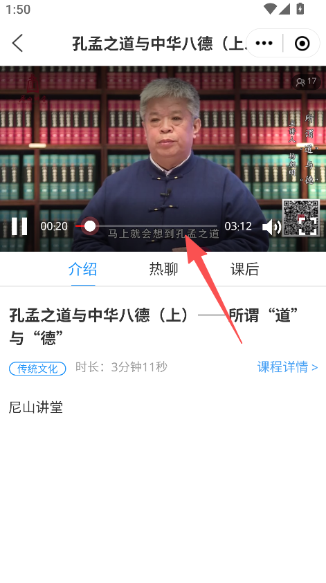 2、选择目标课程,进入课程播放页面。