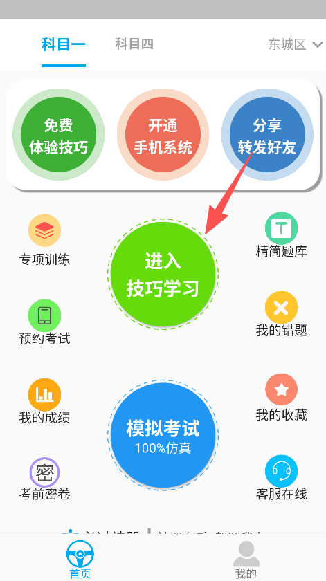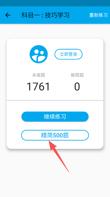 1、提供技巧学习功能,进入对应板块选择精简500题,开展科目一答题技巧的学习与对应题目练习,掌握核心答题方法。