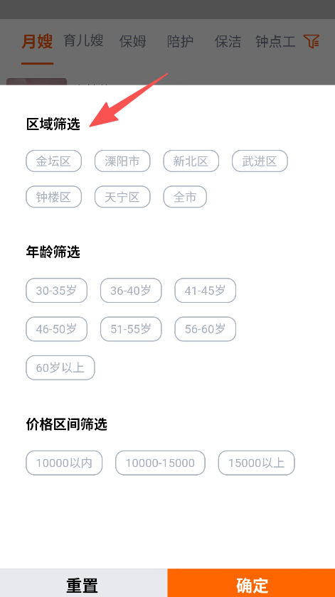 2、支持多维度筛选功能,选择区域、年龄、价格区间等条件,筛选出符合自身需求的家政服务人员列表。