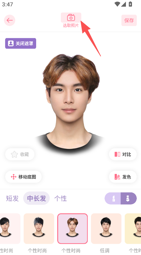 2、支持照片上传与适配功能,选择心仪发型后点击上传照片,系统自动将发型与照片结合,生成直观的预览效果。