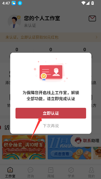 1、郑重按下"立即认证"按钮,如同开启专属处方工具箱,正式启动您的数字行医之旅。