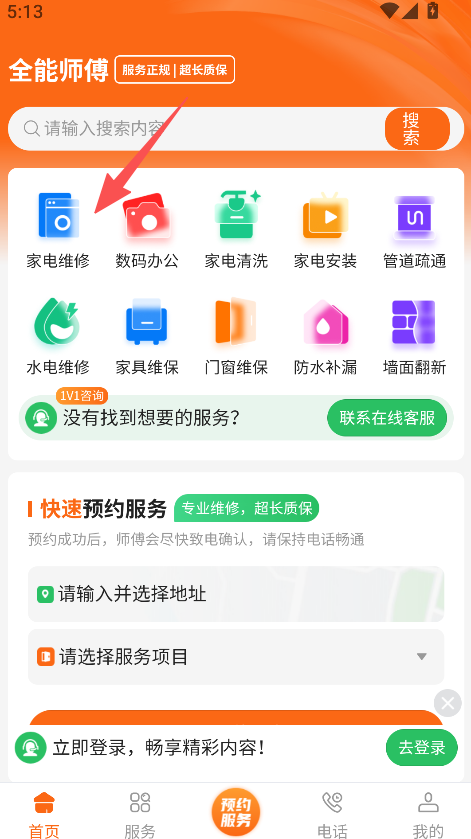 1、涵盖多类生活服务项目,包括家电维修、数码办公、家电清洗、家电安装、管道疏通、水电维修等,覆盖日常所需的各类上门服务场景。