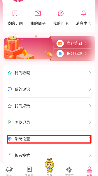 2、在个人中心页面下滑,找到 “系统设置” 选项并点击,跳转至软件功能设置界面。