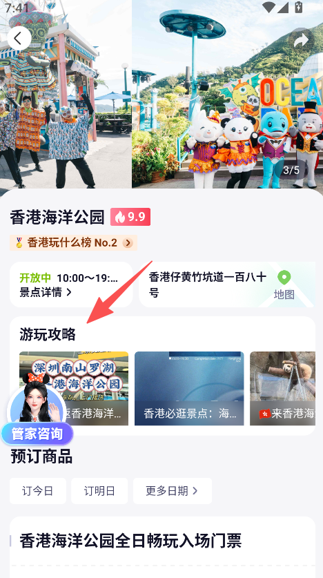 3、设有游玩攻略查看功能,进入对应票务页面可查看相关游玩攻略,辅助规划旅行中的游玩安排,同时支持商品预订操作。