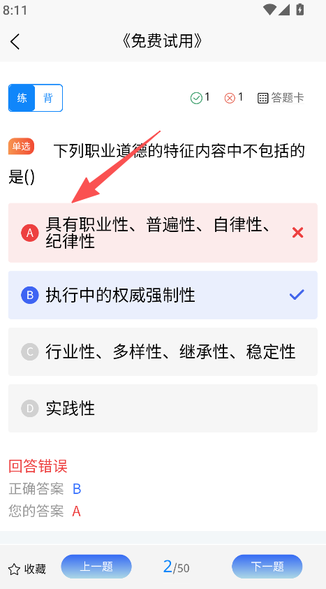 3、答题后同步呈现结果反馈,完成题目选择后,即时显示答题对错情况,同时给出正确答案,帮助快速知晓答题结果及知识要点。