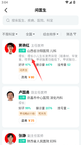 2、在琳琅满目的专家列表中,选择一位看起来最“对症”的医生,好比为您匹配一位健康管家。