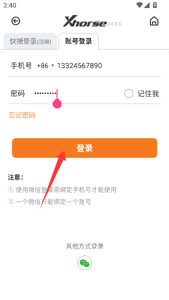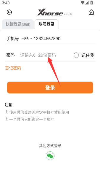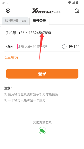 1、输入您的手机号码,就像插入第一把钥匙,启动整个专业诊断系统的身份验证流程。