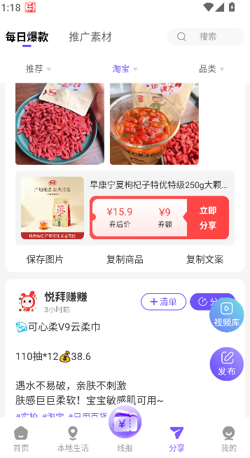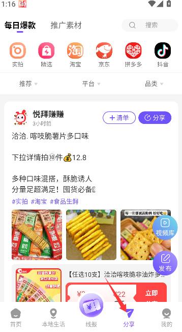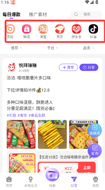 1、在应用主界面找到并点击“分享”按钮或图标,即可进入商品分享功能页面。