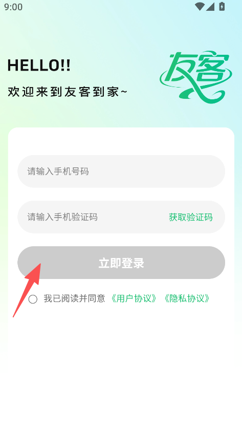 1、打开软件,输入手机号,勾选协议后获取验证码。