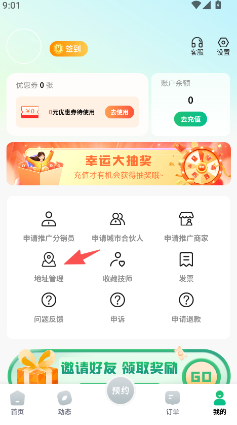 2、我的页面集成多类功能入口,涵盖优惠券、账户余额查看及地址管理等操作,功能布局贴合点单服务的日常使用需求。