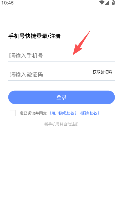 1、支持手机号快捷登录注册,输入手机号、获取并填写对应验证码,勾选相关协议后完成操作,获取使用软件题库资源的权限。