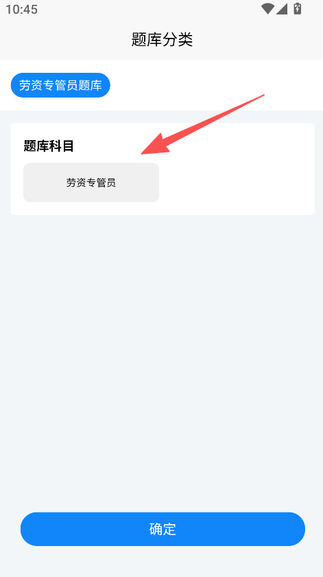 2、提供题库分类选择功能,进入对应页面后选定劳资专管员题库科目,确认后进入专属题库页面,获取对应考试的练习资源。