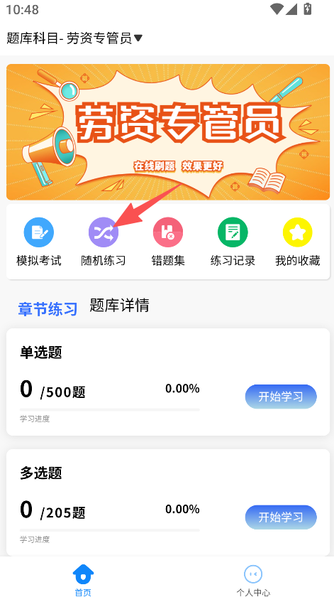 2、按劳资专管员考试题型划分练习内容,分设单选题、多选题等类别,清晰呈现题量与学习进度,便于备考者把控练习节奏。