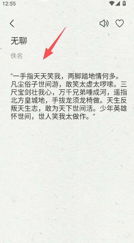 3、设有作品互动功能,在作品页面点击爱心图标,可对当前诗歌作品进行收藏,便于后续再次查看该作品。