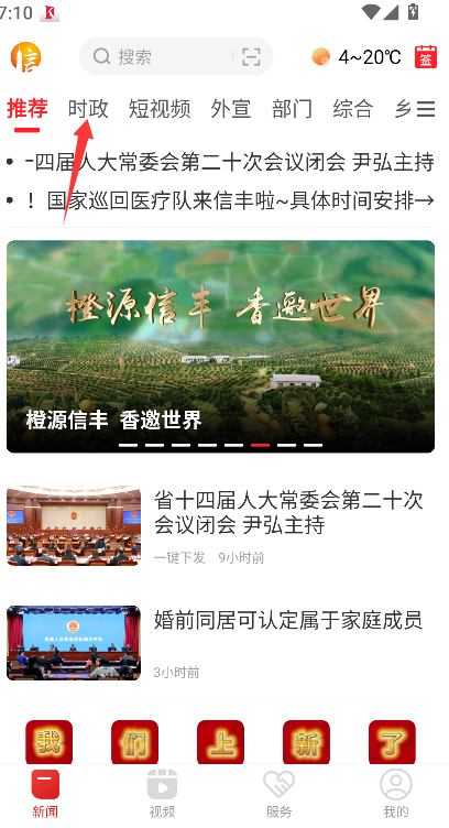 1、找到并点击导航栏或功能区的“时政”栏目入口,进入时政新闻列表页。