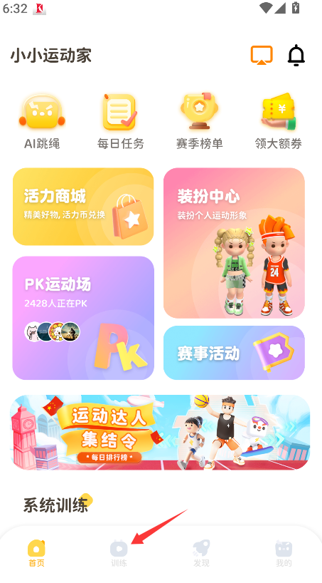 1、在首页下方导航栏找到并点击“训练”选项,进入训练课程总览页面。