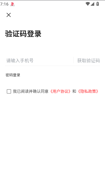 2、点击登录选项进入认证界面,在输入框中填写个人手机号码并完成验证码或密码验证。