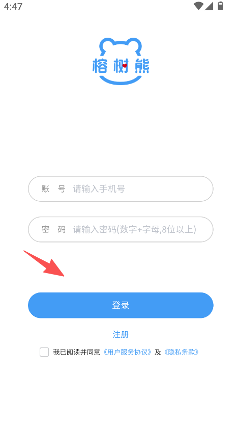 1、提供账号登录功能,输入手机号与含数字字母且8位以上的密码,勾选相关协议后点击登录,获取软件各项功能的使用权限。