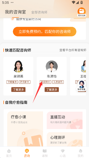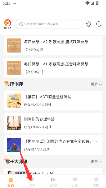 1、轻轻一点首页底部的“咨询”大门,就像按响心灵驿站的门铃,准备迎接一位专属的放松向导。