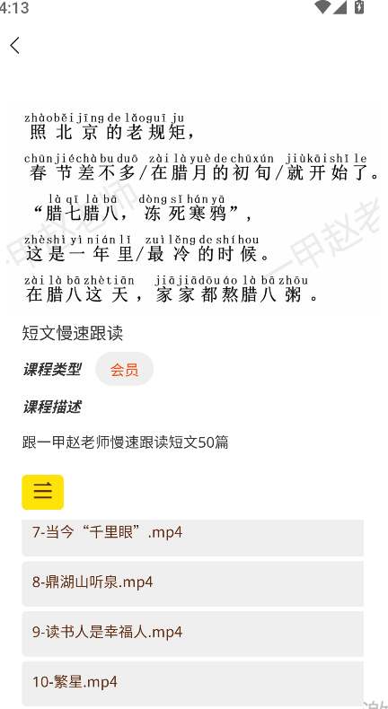 2、从文章列表中选择一篇目标文章,准备开始跟读练习。