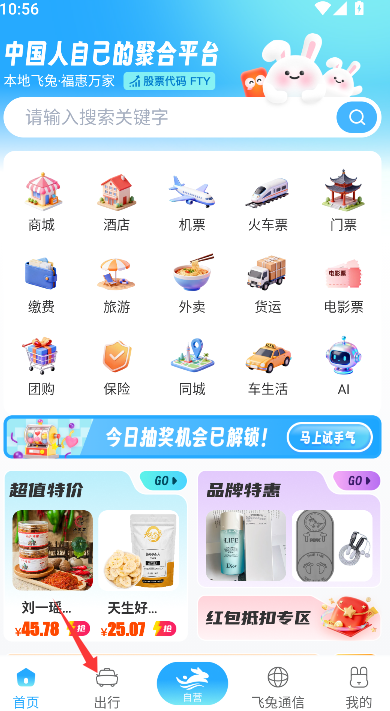 1、找到并点击“出行”服务入口,进入出行功能选择页面。