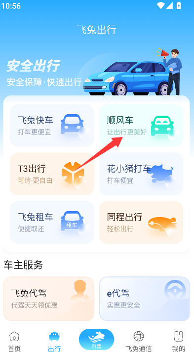 2、选择“顺风车”功能并点击进入车辆匹配界面。