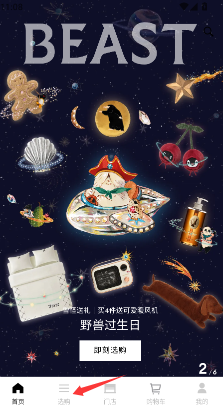 1、找到并点击"选购"功能入口,进入平台商品陈列主页面。