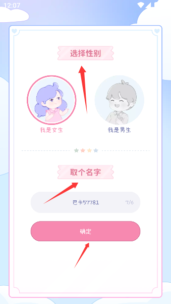 1、请深思熟虑选择性别,因为这个名字将伴随你在棉棉世界的每一次日出月落,点击确定的瞬间仿佛能听到命运齿轮开始转动的咔嚓声。