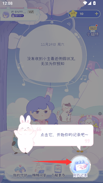 3、勇敢点击那个闪闪发光的月历记录按钮,就像打开一本魔法日记的第一页,每个空格都等着填充今天发生的趣事或突然的奇思妙想。
