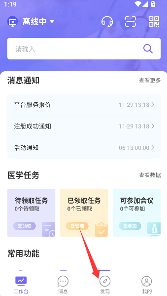 1、轻触首页底部那枚神秘的"发现"图标,仿佛推开医学宝库的大门,无数知识宝藏正静候探索者的脚步。