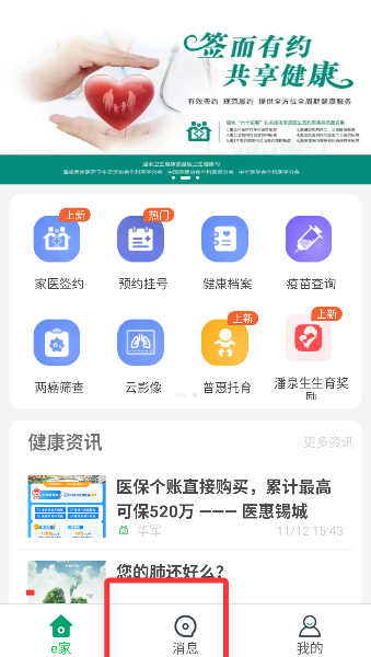 3、底部那个闪动的小图标是消息板块,仿佛私人医疗通讯中心,重要提醒和健康动态都在此安静等候查阅。