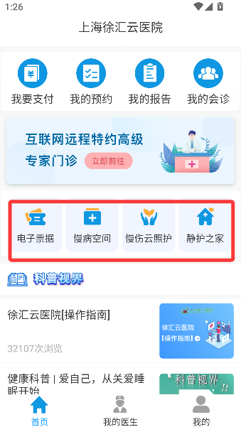 2、手指往下滑,电子票据和慢伤云空间赫然在列,仿佛在说“连伤口护理都能云端搞定,科技真狠”。