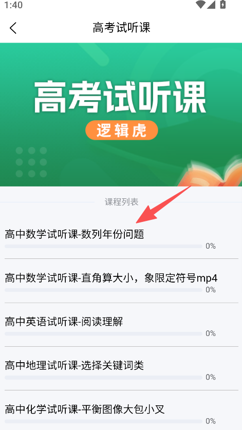 2、进入高考试听课页面,选择课程列表里的目标试听课程。
