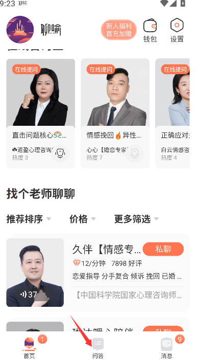 1、定位并点击核心功能入口“问答”板块,进入问答社区页面。