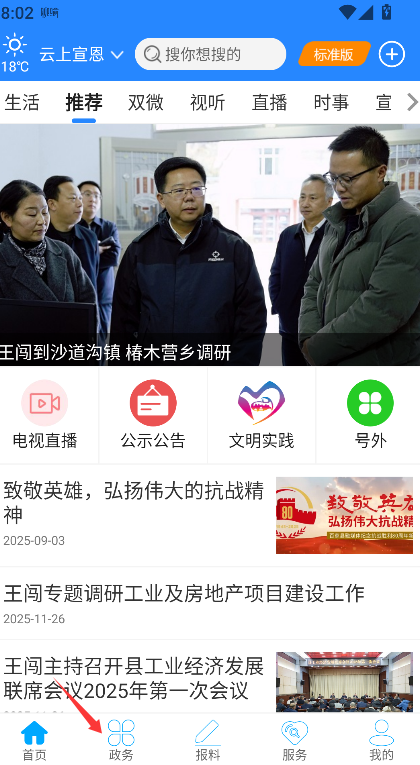 1、在主界面找到并点击“报料”入口,这是提交新闻线索的起始步骤。