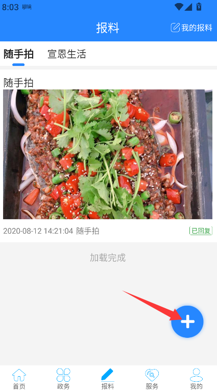 3、通过拍摄或选择手机相册中的图片进行上传,即可成功完成一次报料提交。