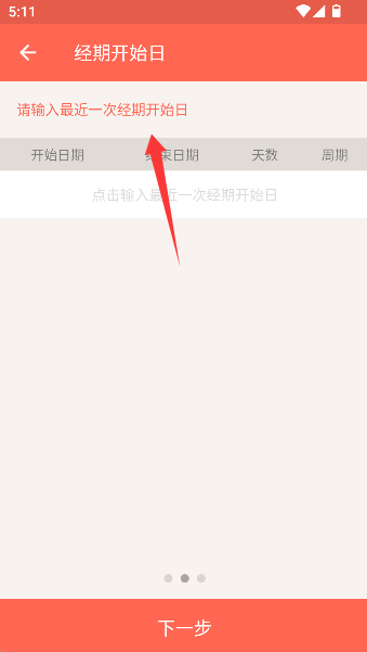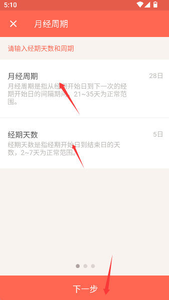 1、填写月经天数和周期就像设置专属生理周期密码锁,点击下一步即刻启动智能追踪系统。