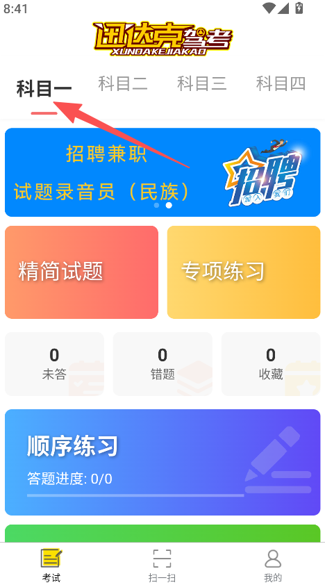 2、在科目一页面,找到对应练习板块。