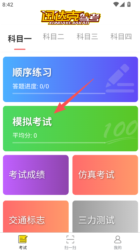 3、进入科目一界面,点击模拟考试开始练习。
