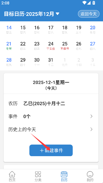 2、接着,找到那个醒目的“+”号轻轻一触,仿佛在时间的长河里投下一颗名为新事件的小石子。