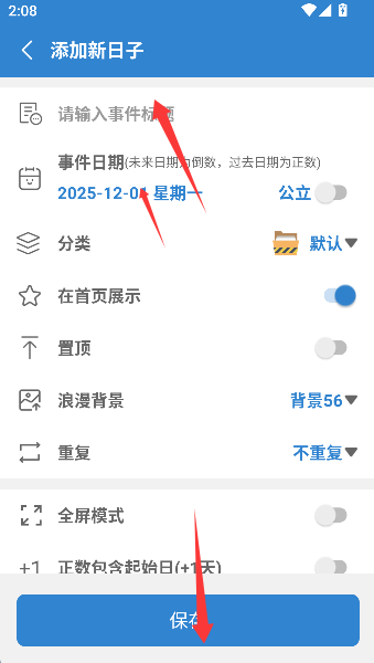 3、最后,为事件起个响亮的名字,像调时钟般滑动选择好日子,潇洒地按下保存键盖章生效。