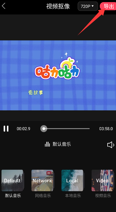 3、完成音乐添加及其他编辑操作后,点击右上角"导出"按钮,即可生成并保存制作完成的视频作品。