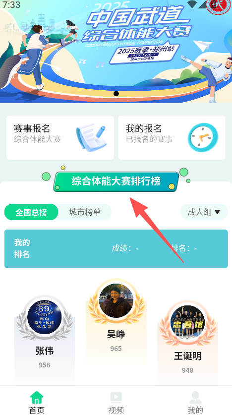 3、进入体能大赛板块,查看综合体能大赛排行榜信息。