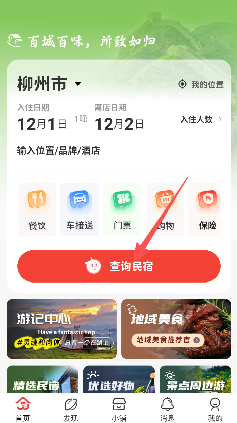1、聚焦民宿预订及出行服务,支持选择城市日期查询民宿,涵盖餐饮等配套,匹配出行住宿需求。