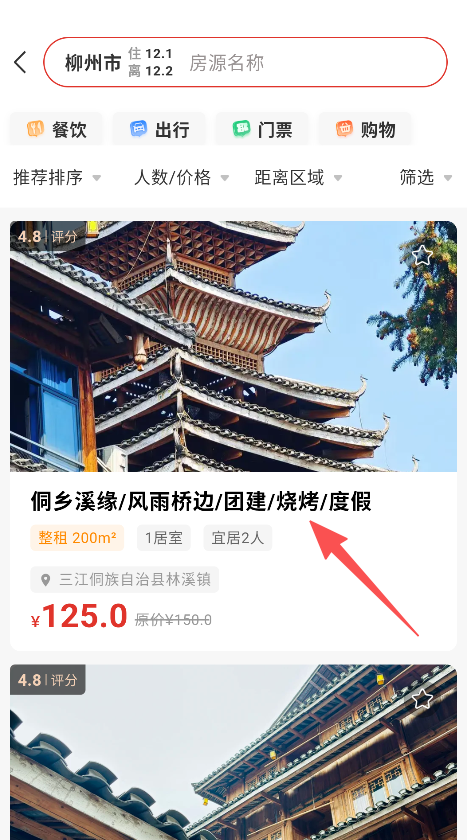2、在民宿列表选择目标民宿,点击进入查看该民宿的详情内容。