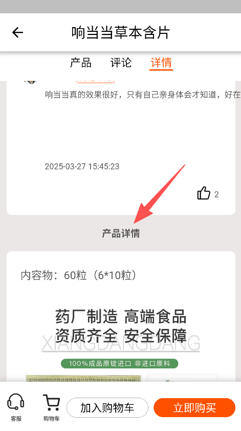 3、在商品详情页查看产品信息,选择加入购物车或立即购买。