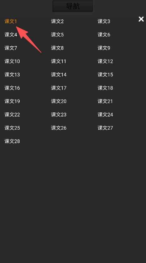 2、支持课文导航功能,在导航页面选择目标课文,进入该课文的学习页面。